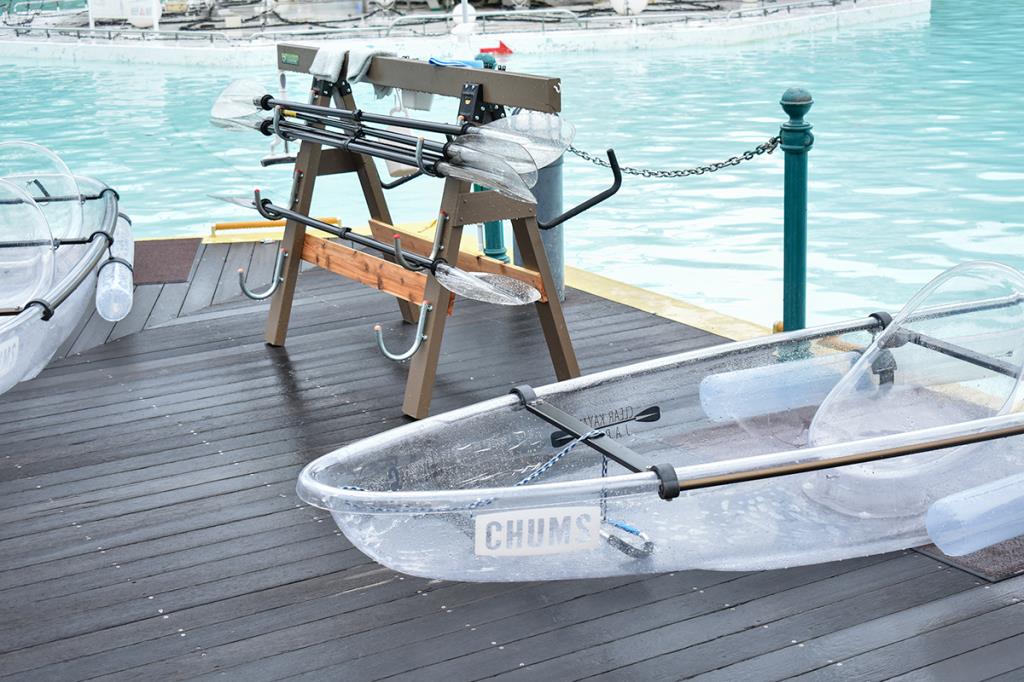 チャムスのロゴをあしらった可愛いウォーターエースやクリアカヌーが登場し、ラグーンを賑わせている。