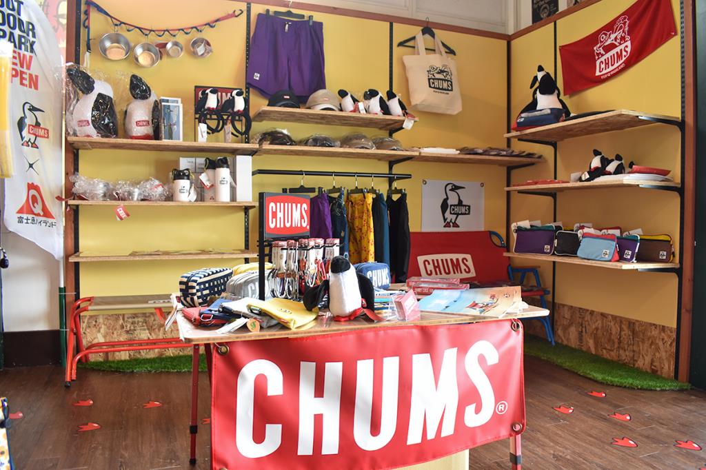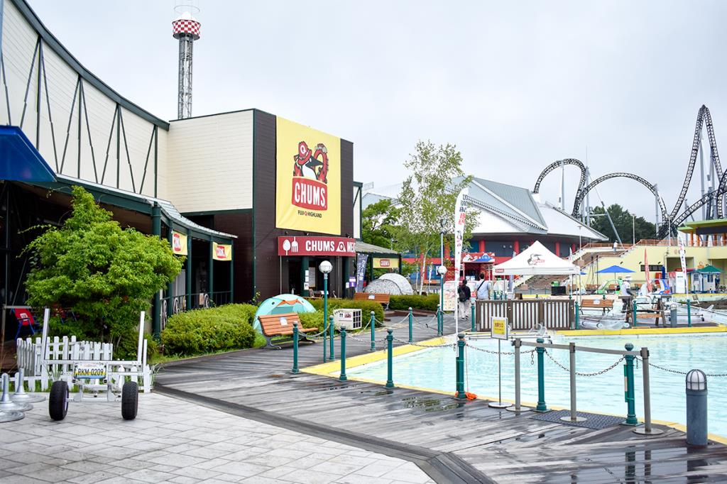 園内中央のクリスタルラグーンでは、ブービーバードでお馴染みの人気アウトドアブランドCHUMS(チャムス)とのコラボ開催中(2020年11月15日まで)!