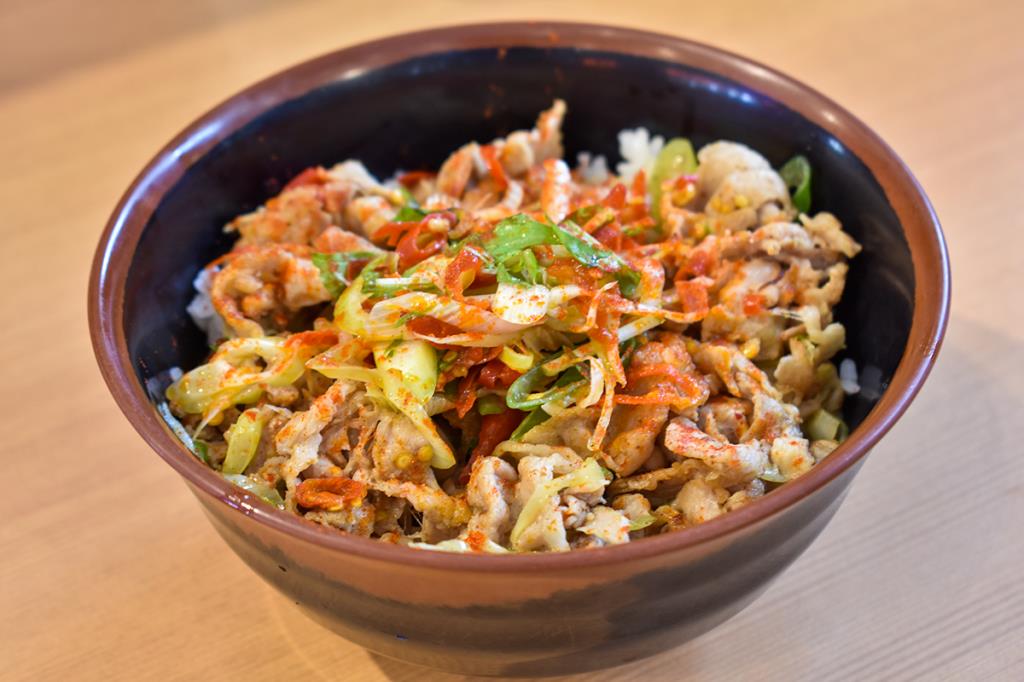 激辛初心者はまず、伝説のすた丼からトライ。辛~いけど、秘伝のニンニク醤油ダレが効いて◎♪辛いもの好きには美味しく食べられる。