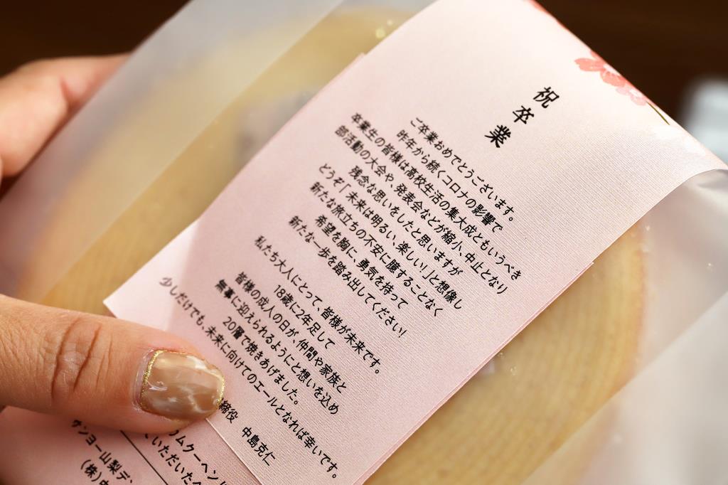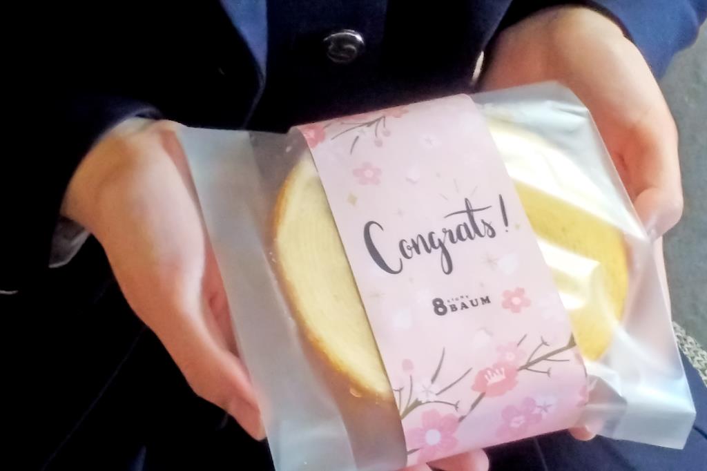 甲斐市のバウムクーヘン専門店「8BAUM」(エイトバウム)が2021年よりスタートした、未来へのエールを込めた「卒業バウム」の無料プレゼント。