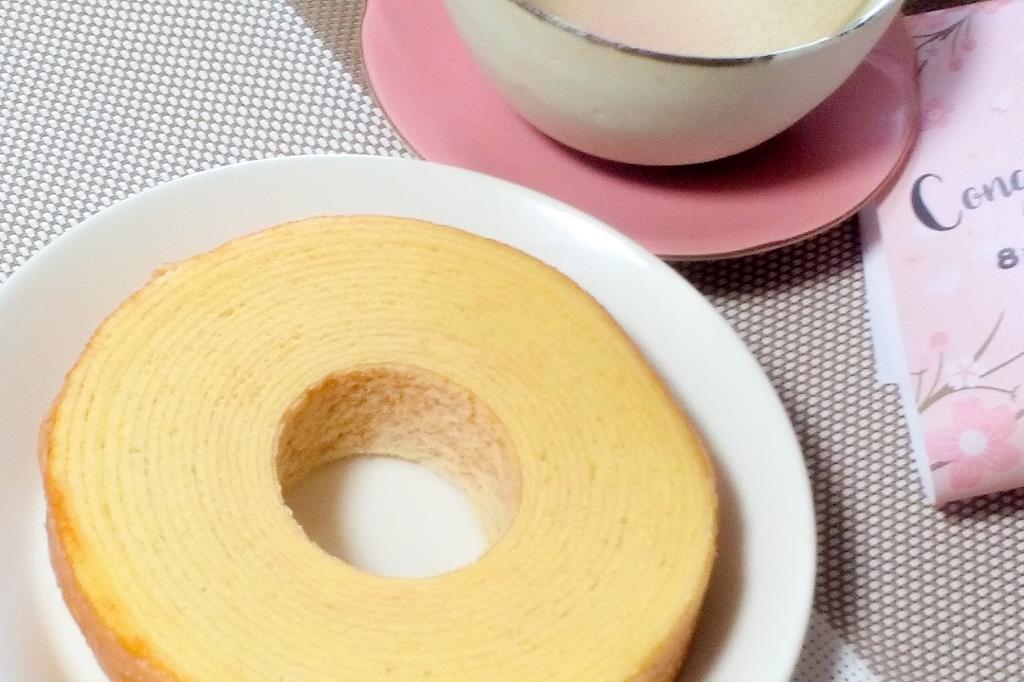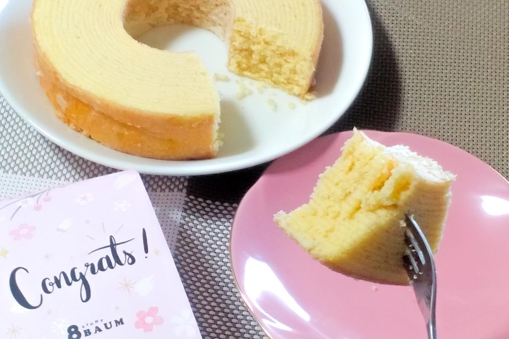 米粉と小麦粉をブレンドしているから、しっとりもっちりした食感で、甘さ控えめのやさしい味わい。一般的なバウムクーヘンよりもひと回り小さめで、食べたいその日その時にちょうど食べきれるサイズ感もいい。
