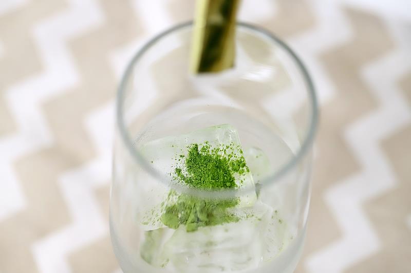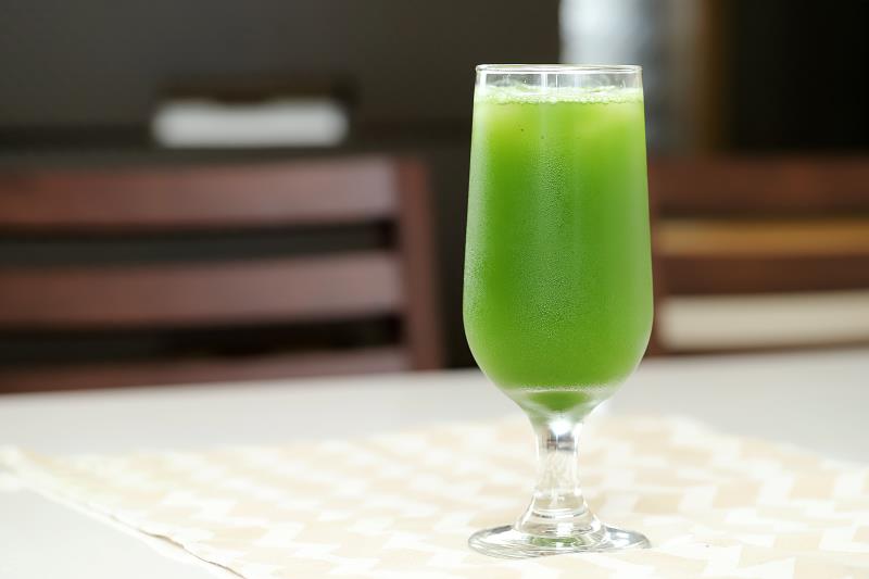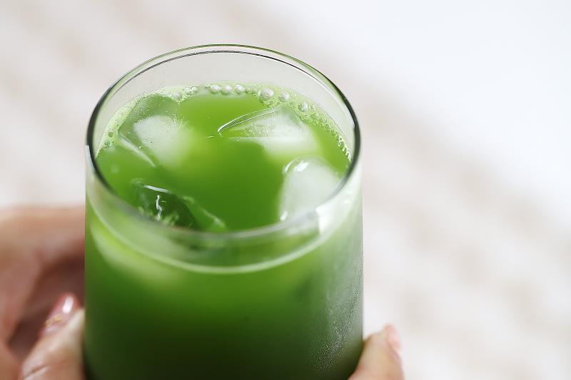 きれいな緑色で、お茶のいい香りが!氷を浮かべて、アイス桑茶の出来上がり!