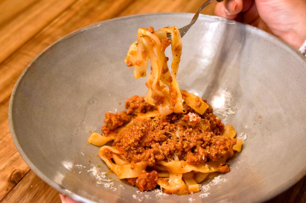 メインには、ほうとうをパスタに見立てたボロネーゼを。