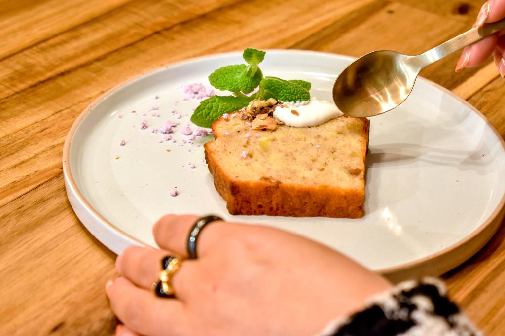 本日は、otomonuts®のクラッシュキューブを使ったバナナのパウンドケーキをいただく。