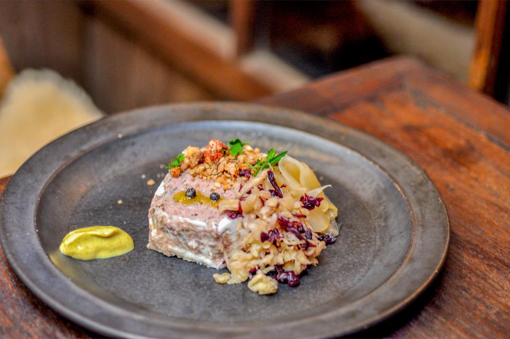 曲時代の鉄板メニュー、リンゴを“ガリ”と同じ作り方で甘酢漬けした「ガリんご」とクラッシュナッツがトッピングされた、パテドカンパーニュも健在!