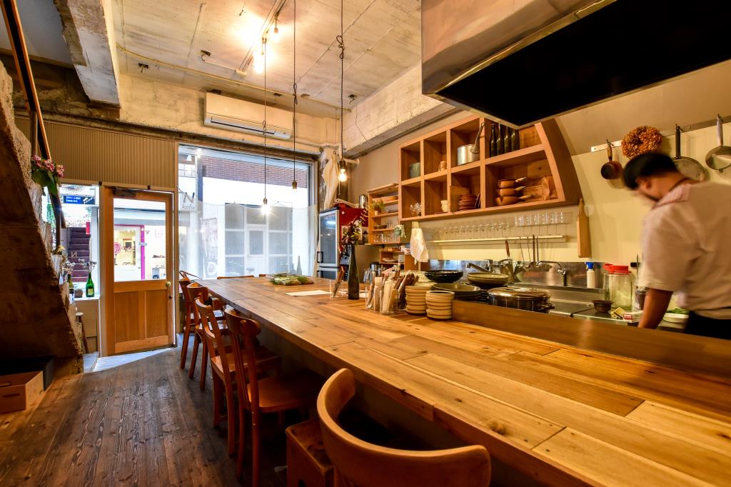 カウンターと2~3人のテーブル席のみのこぢんまりとした店内は、カフェのように気軽にくつろげる雰囲気が漂う。