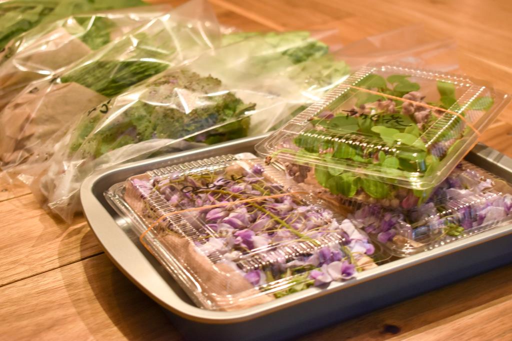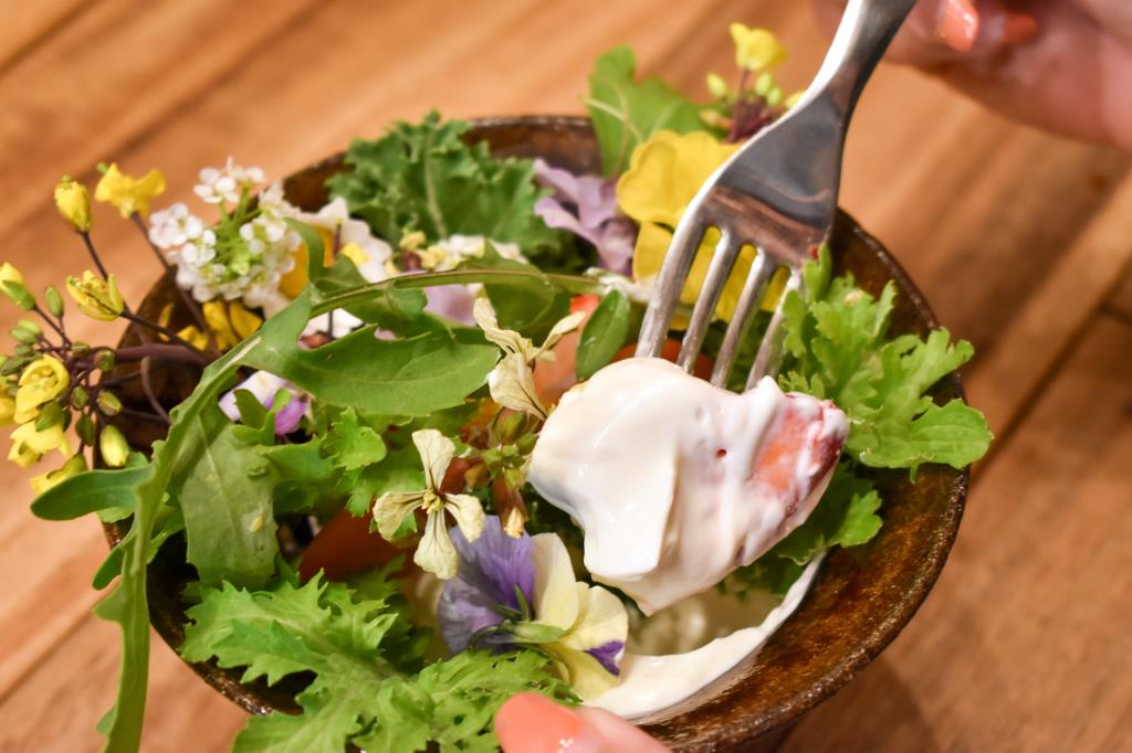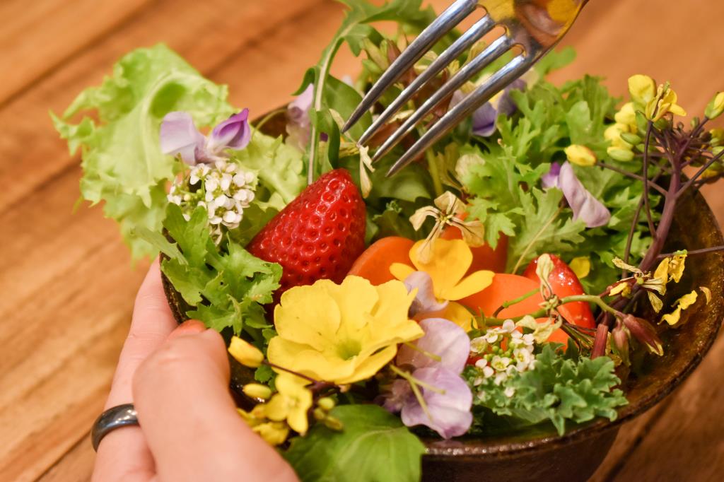 野草やいちごなどがたっぷり入ったサラダは、all山梨産!