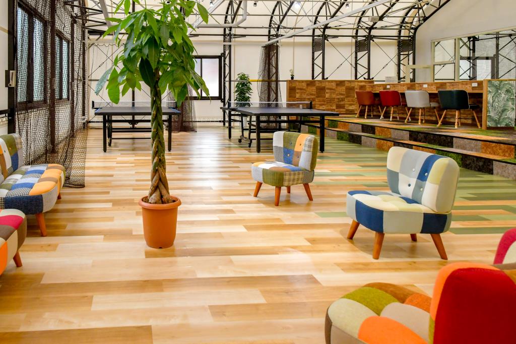 従来のイメージを覆す、とって明るく開放的な空間が広がる。ドーム内には太陽光が程よく差し込み、昼間は照明の必要なし!