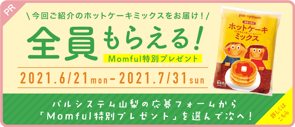PORTAの姉妹サイト、働く未就学児ママを応援する「Momful」で、ただ今“全員もらえるプレゼントキャンペーン”を実施中。簡単なアンケートに答えれば、パルシステムの大人気商品、「ホットケーキミックス」がナント全員もらえちゃう!