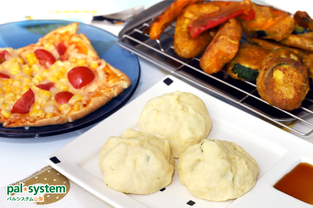 シナモンロールにピザ、野菜のカレーフリッターから肉まんまでが、これひとつで作れちゃう、まさに万能ホットケーキミックス!