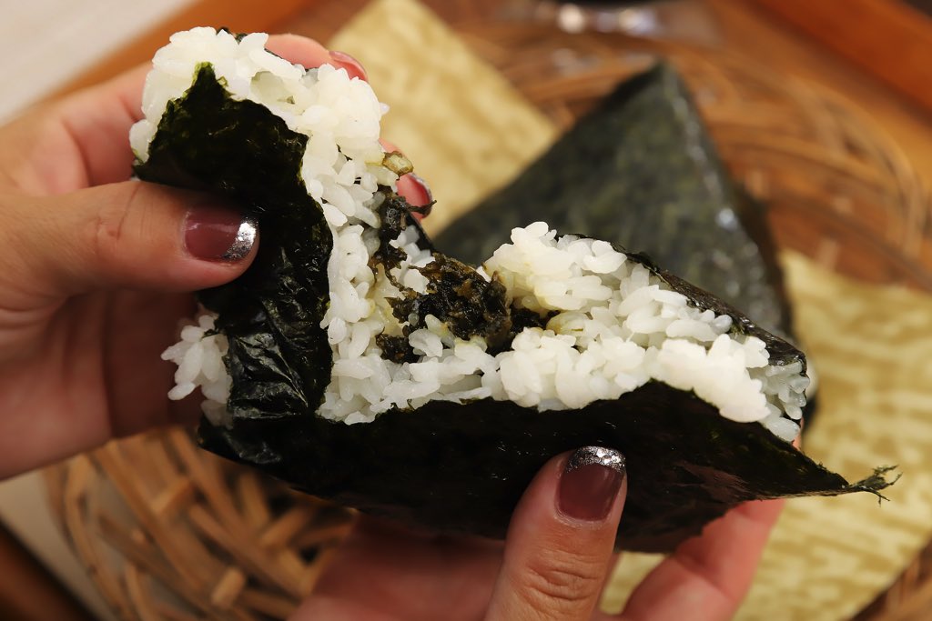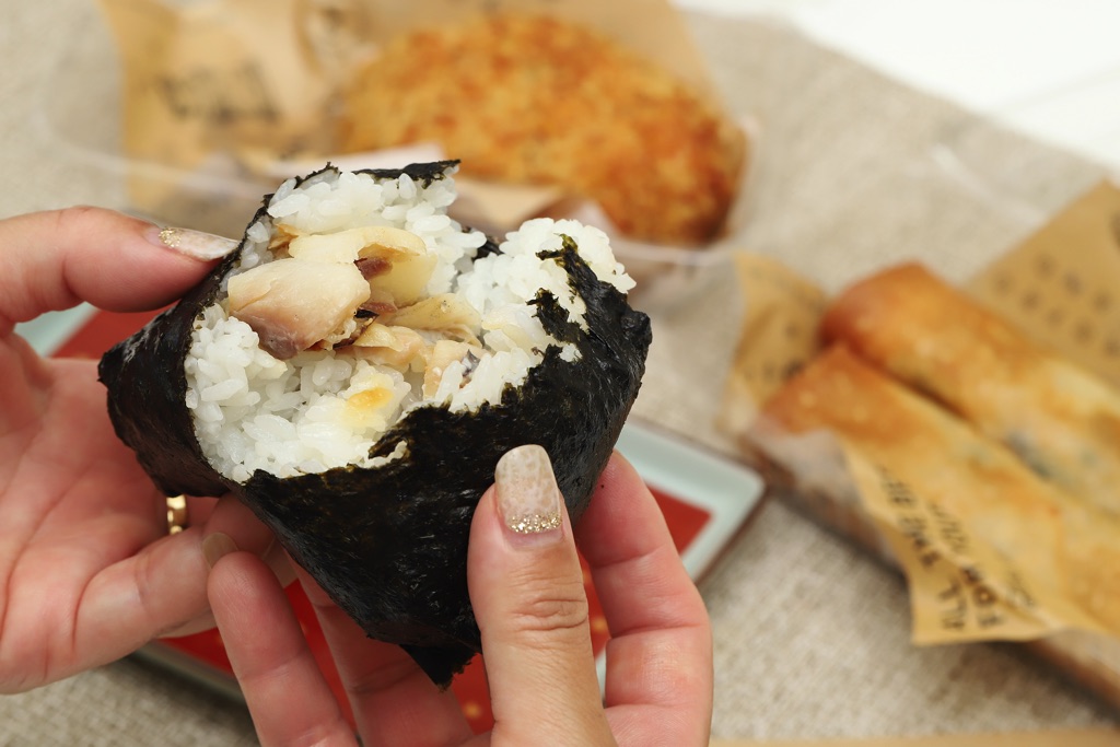 今回は定番の梅といくらの人気の組み合わせをセレクト。どこを食べても大満足なくらい具がみっちりで美味しい~!!おむすびの程良い塩気が具材の良さも引き立てている逸品だ。