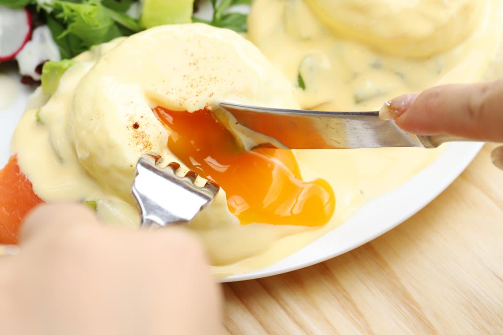 とろとろの黄身と濃厚でコクのあるオランデーズソースが絡み、コクと程よい酸味が舌に心地よく、飽きることなくペロリと食べ進められる。