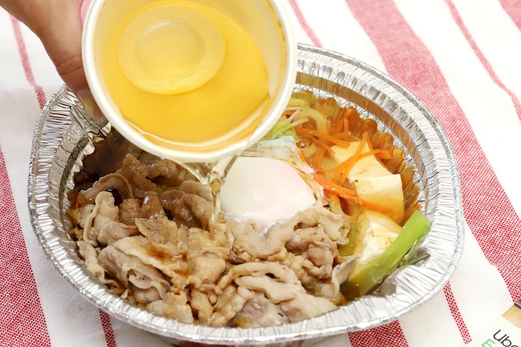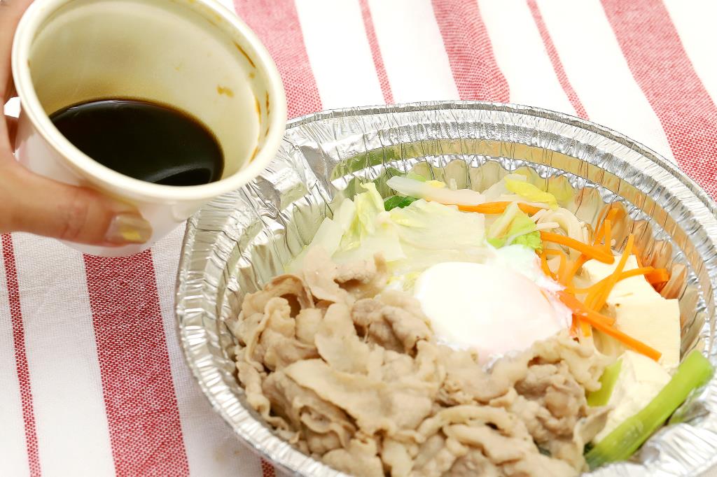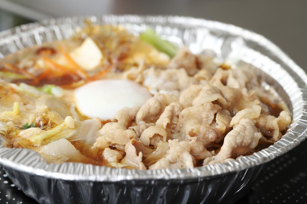 甘めのすき焼き汁でご飯も進みそうだ。単品に加え、ご飯付きや肉倍増などを選ぶこともできる。