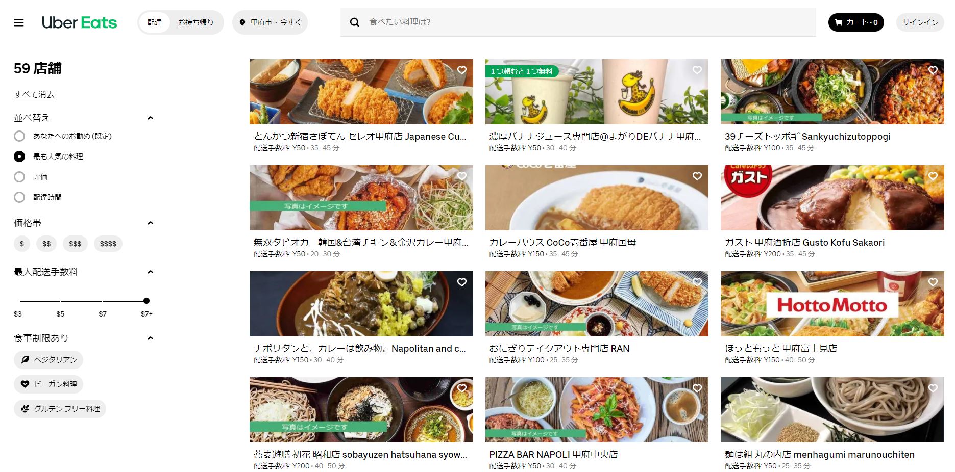 ついに山梨に上陸したUber Eats。利用できるエリアは限られているものの、人気のチェーン店に加え、県内の人気店やスイーツ、デリバリー専門グルメもチョイスできるのでぜひ一度お試しを。