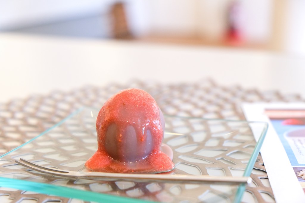 品種によってそれぞれが持つ美味しさ、楽しさがあるいちご。品種による味や香りの違いを余すことなく表現した苺屋あとりゑのいちごだからこそ、このいちご玉の美味しさが生まれるのだと、広報の黒澤玲那さんはいう。