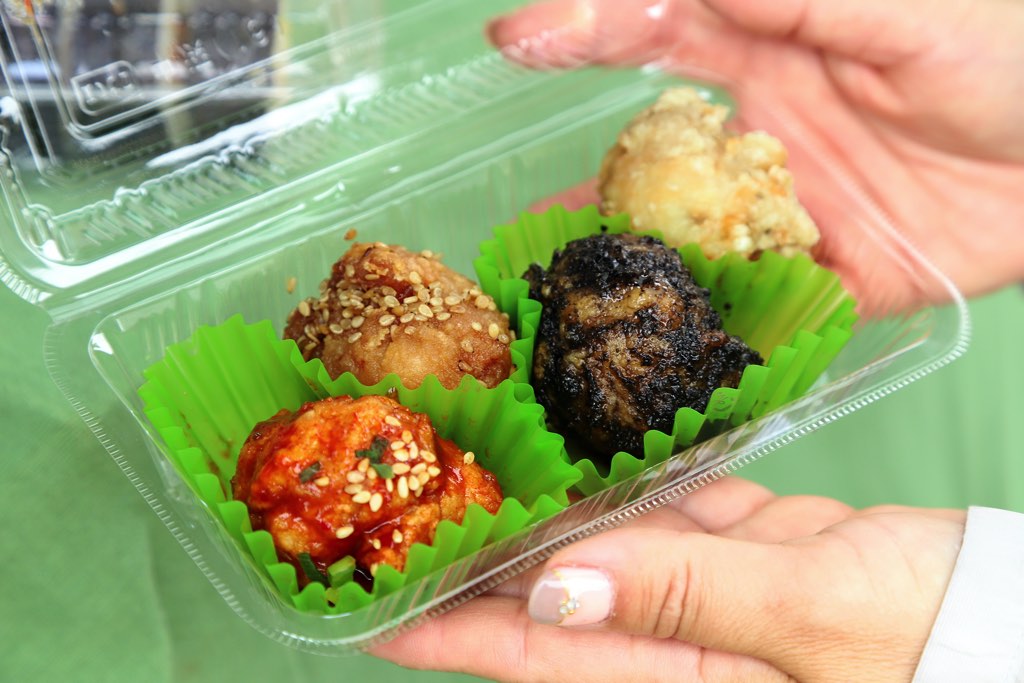 ピリ辛ヤンニョムたれ、甘辛の醤油、香ばしい黒ゴマ、やみつきの美味しさハーブソルトの4種類の唐揚げをセットにした「おためしパック」も人気だ。