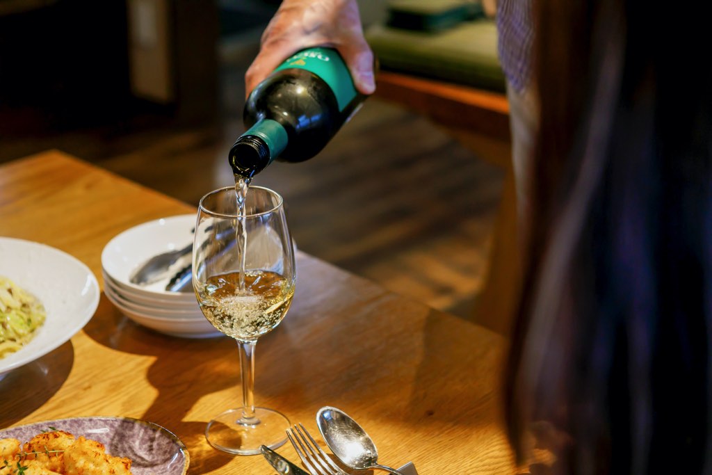 本日は4,500円のディナーコースをオーダー。まずは乾杯の白を。