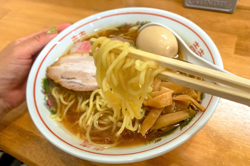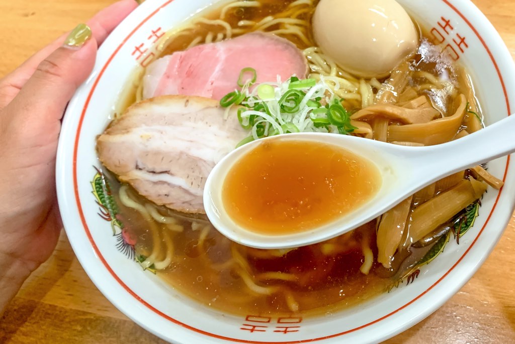 透明度の高い醤油スープはクセがなく、やわらかな旨味が広がる深い味わい。淡麗な醤油の旨味が広がり、あっさりといただける。