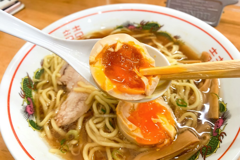 味がしっかり染み込んだ味玉は、黄みが流れ出すほどではないけど、とろとろ~と最高の仕上がり具合で、すべてに手を抜かない店主の心意気が感じられる。