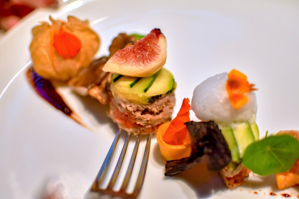 化学肥料を一切使わず、無農薬栽培したきのこの力強い味わいと韮崎の黒イチジク、ワインラムなどが食材の可能性を感じさせ、五感で吸収させてくれる。