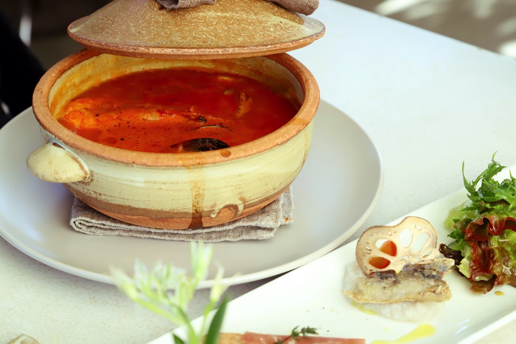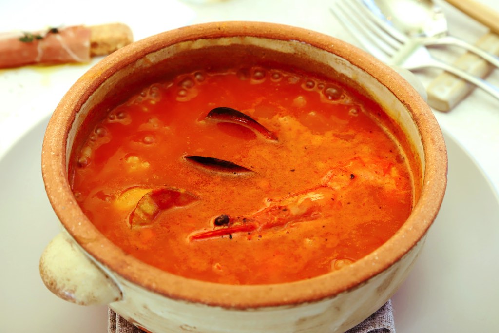 大ぶりのエビにムール貝、ホタテがごろっと入り、魚介のエキスにサフラン、ニンニク、バターが複雑で繊細な旨味を濃縮させる。