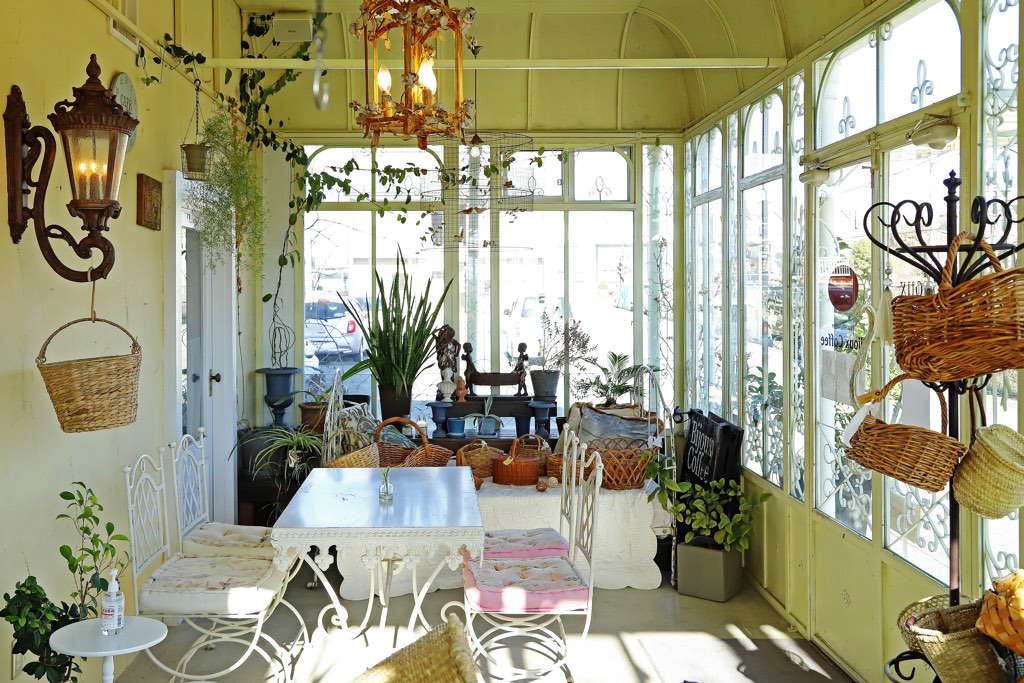 白を基調にしたヨーロッパのアンティークな雰囲気漂う店内はそのままに、席や照明の配置を変えて、洒落たレストランへと大変身~♪