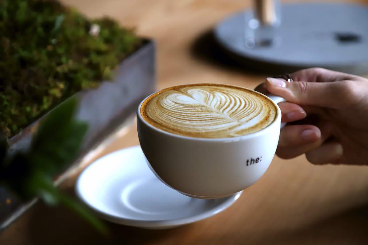 the;kokuboのカフェラテは、深煎りで抽出したもの。ほろ苦さとミルクのコクがバランスよく調和されたひと品だ。