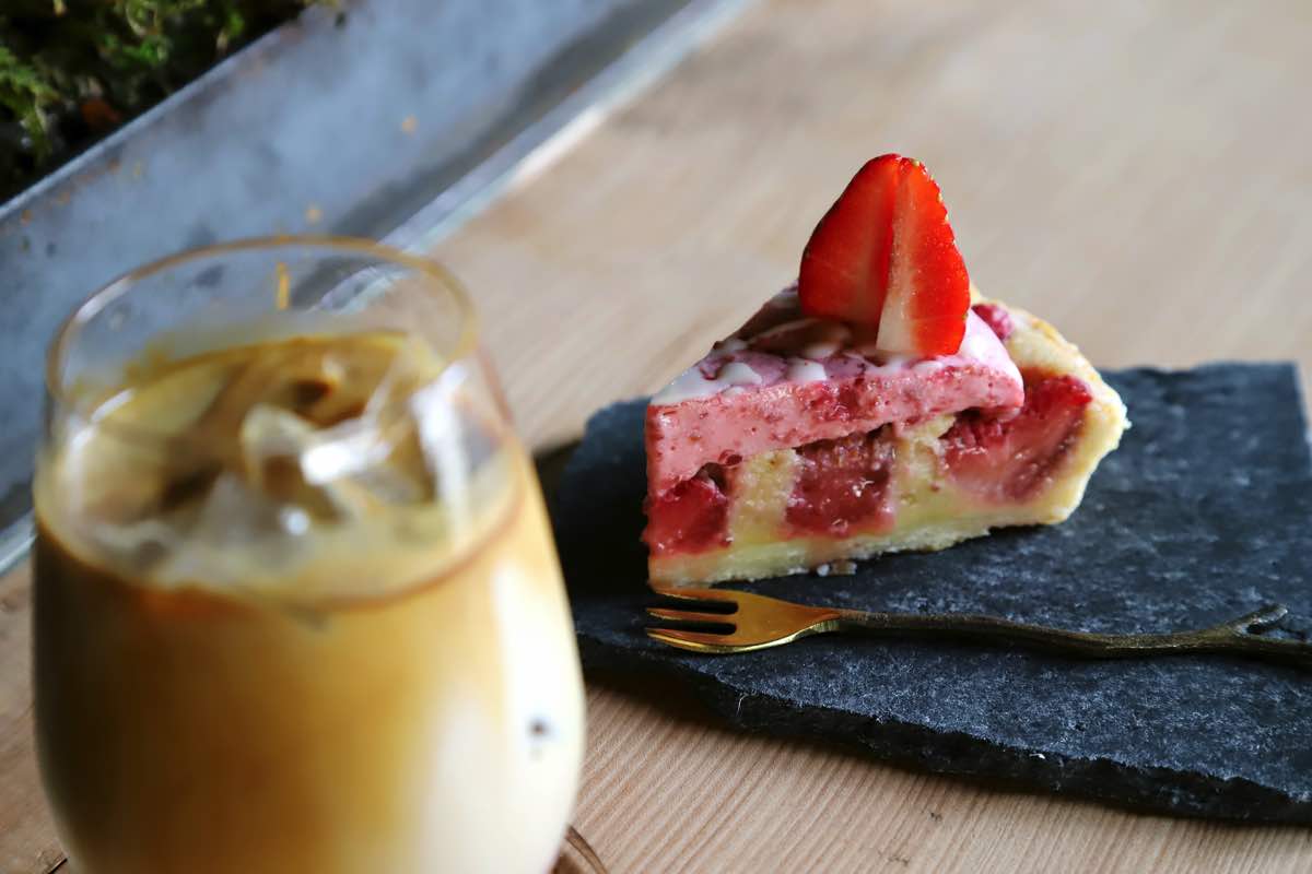 いまの時期にいただける「ストロベリーラテ」と「焼き苺タルト」は果肉感満載の甘酸っぱい味わいで、いちご好きにはたまらない♪