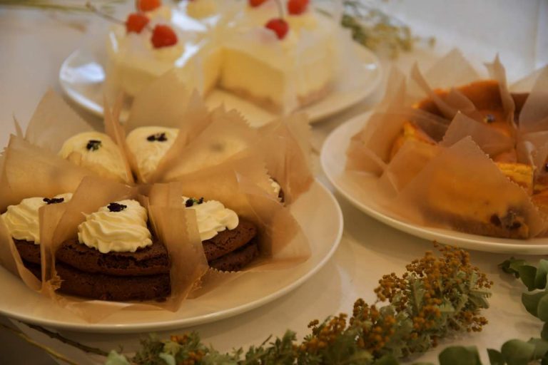 甲府市momona菓子店オープン! 白を基調にした空間に並ぶ お花モチーフのケーキと焼菓子