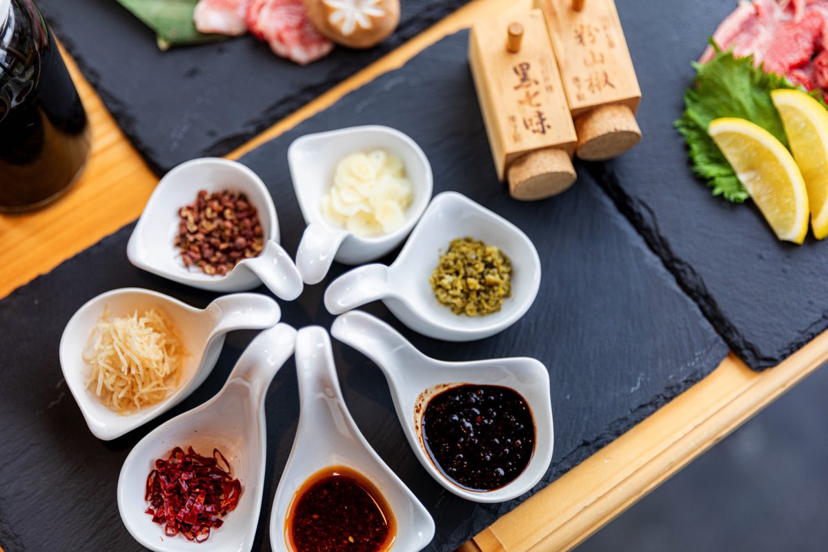 自家製柚子胡椒に自家製朝天醤、自家製ラー油などつけダレもバラエティ豊かに揃い、様々な味変を楽しめるのも魅力的だ。