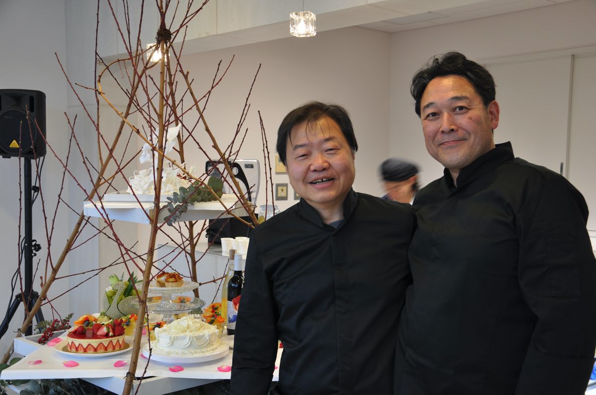 金子シェフ(写真左)といえば、銀座の老舗洋菓子店「銀座ウエスト」で、柔軟な発想力と素材へのこだわりで魅力的な新商品を生み出し続けるスーパーパティシエ。