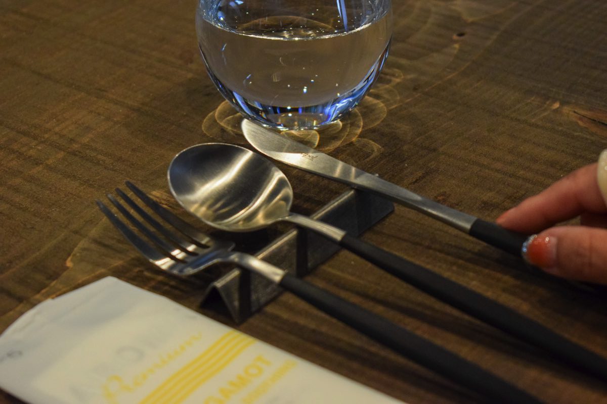 「食事をする上で常に身体に触れているカトラリー。その重要性は言うまでもない」と大澤シェフ。持ったときの質感、重量感、扱いやすさにまで、配慮を忘れない。