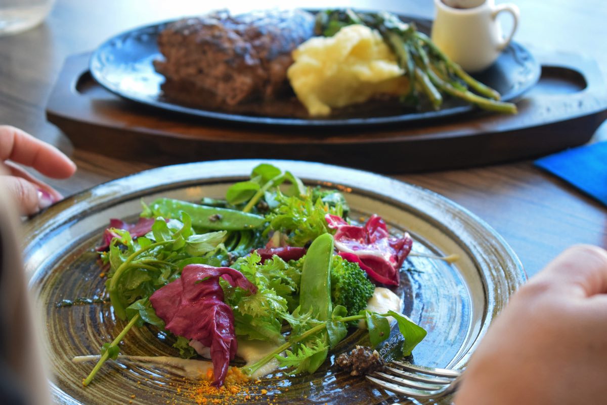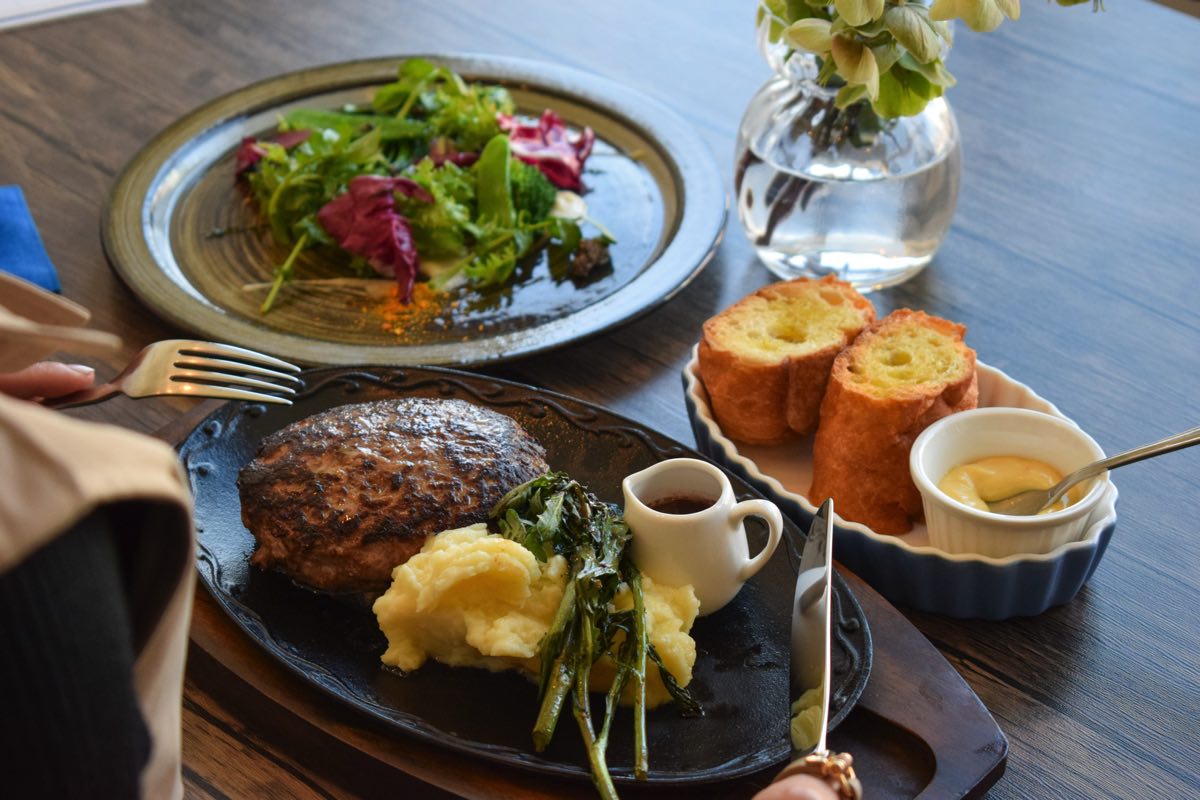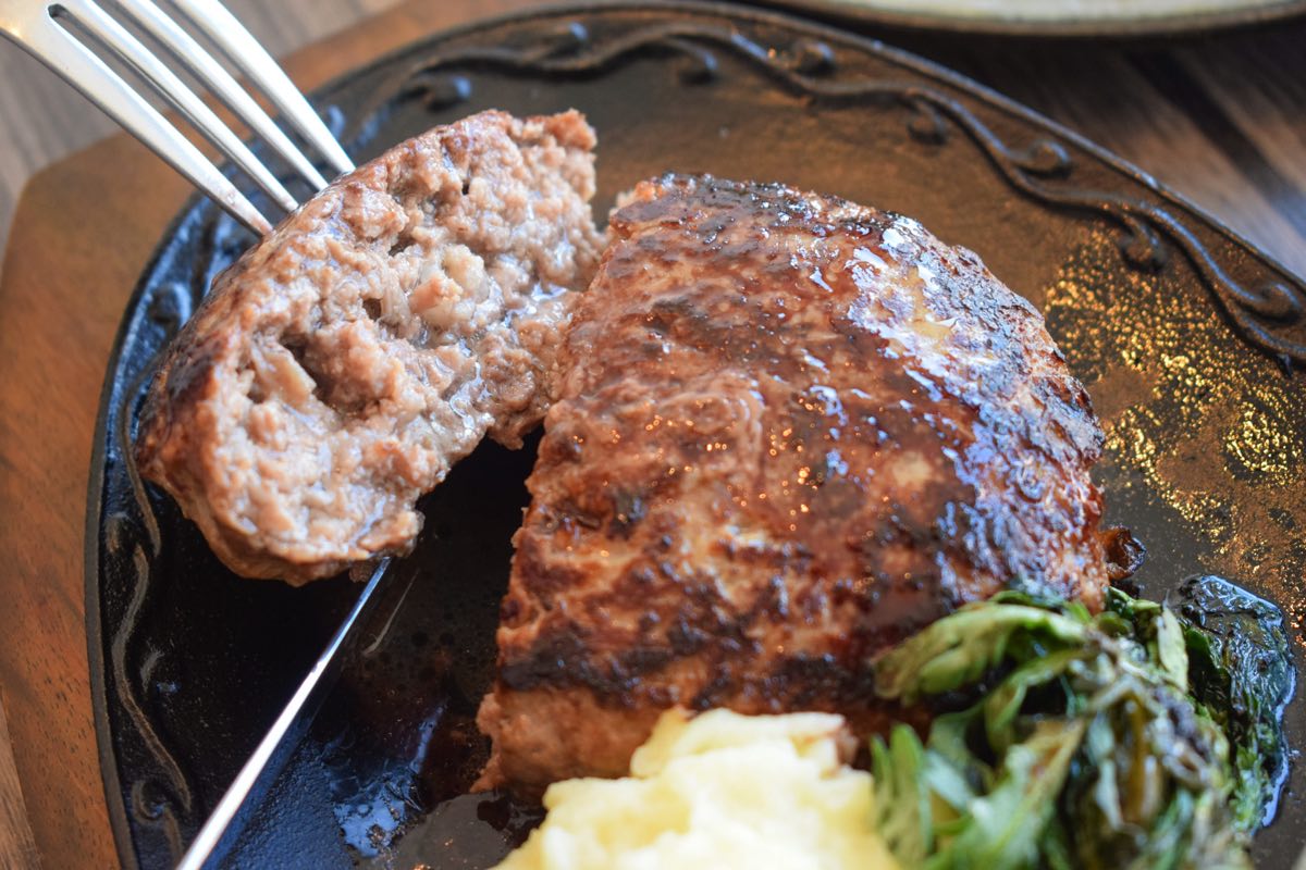 「ここに来たらまずはこれを食べねば始まらない~!」ということで、早速宮崎牛と国産豚のハンバーグランチをいただきます♪せっかくなので、 欲張って300gをセレクト!