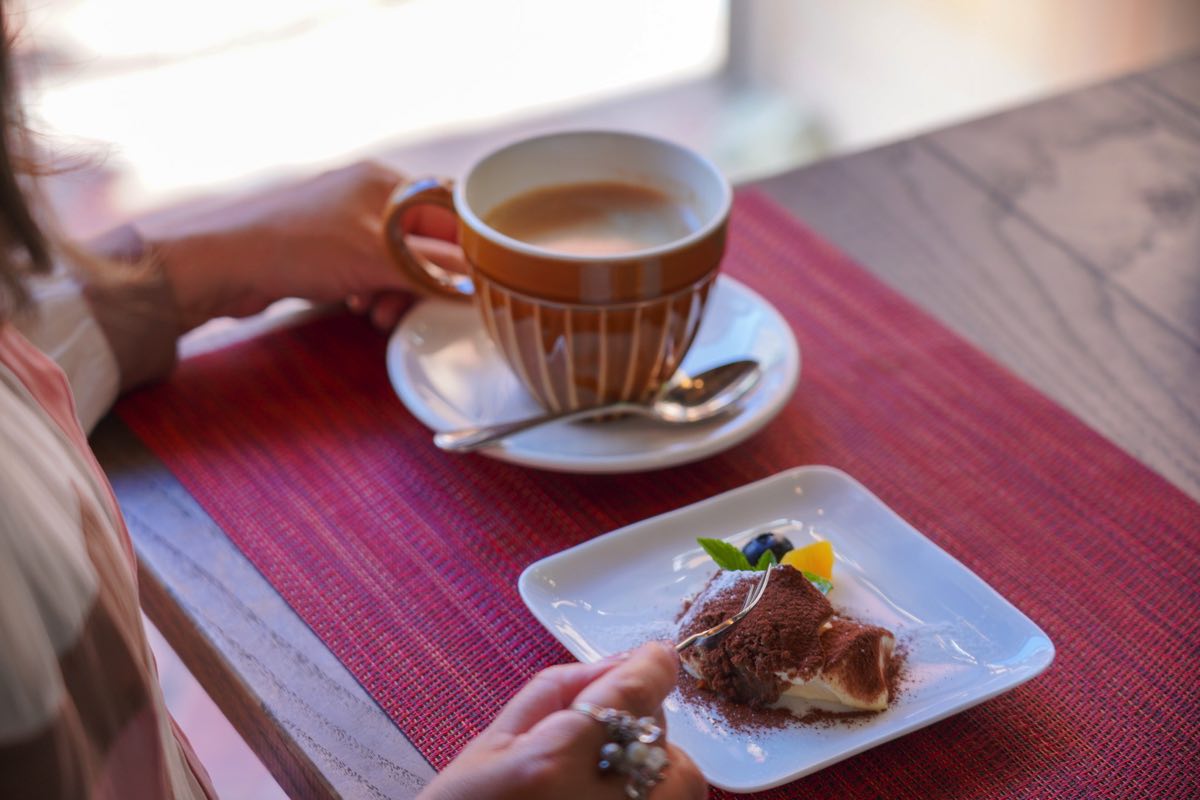 イタリアのドルチェと言ったらこれ、ティラミス~。カカオ香るココアパウダーがたっぷりかけて仕上げ、クリーミーなマスカルポーネとほろ苦コーヒーが大人のプチ贅沢なスイーツタイムを彩る。