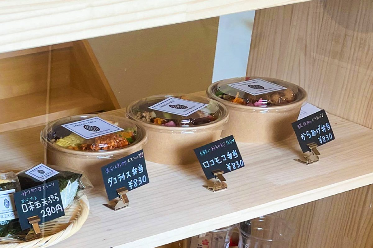 そのほか、タコライスや唐揚げなど、日替わりでお弁当やお惣菜が登場。また、数量限定で米粉のシフォンケーキもあり、米粉とは思えないくらいしっとりふわっふわ!「トゥルシー」というハーブとアールグレイやバナナなどのフレーバーがラインナップするので、食後のデザートにぜひ。