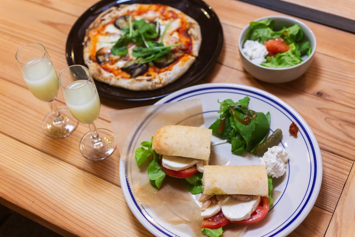 工房では、山梨県産の搾りたて牛乳を使ったモッツァレラを丁寧に手造りする。牛乳本来の甘みが感じられるこのモッツァレラを存分に味わうべく、ピザをオーダー。