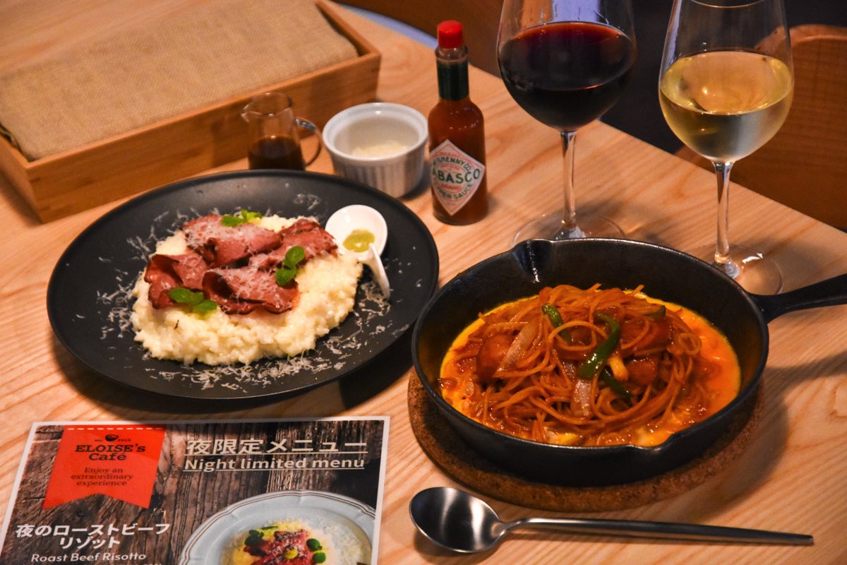 週末のディナータイムを彩る料理には「夜の鉄板ナポリタン」と「夜のローストビーフリゾット」の2種類が揃い、通常メニューとはひと味違ったラインナップに、食べる前からワクワクが止まらない~♡