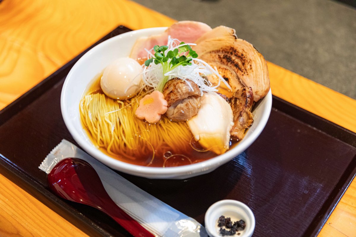 どこまでも透き通った黄金色のスープに、まるっと艶やかな味玉が浮かび、存在感際立つ個性豊かな肉たちは、まるでそれぞれの王が乱立する小国のようだ。