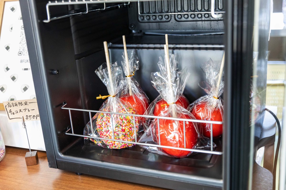 こちらのお店、「PAKIRA no MI」としてクレープとりんごあめのキッチンカーも手掛けており、店内ではりんごあめも販売♪