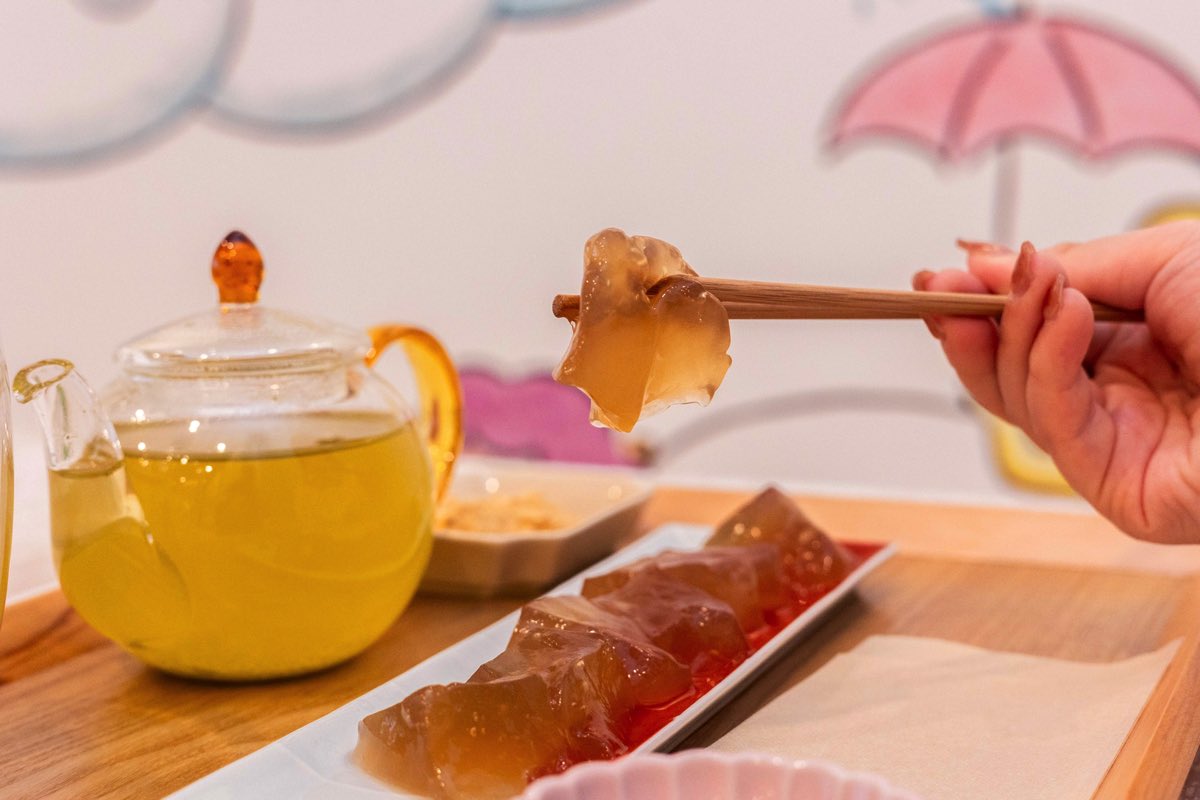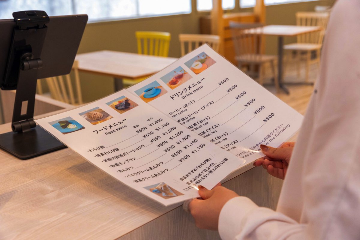 今回は、雲の上の気分を味わいながらイートインすることに。“若者や外国人にも和菓子を身近に感じてもらいたい”という思いの元、メニューにはわらび餅やあんみつ、ガトーショコラなど、親しみやすい和スイーツがラインナップ。