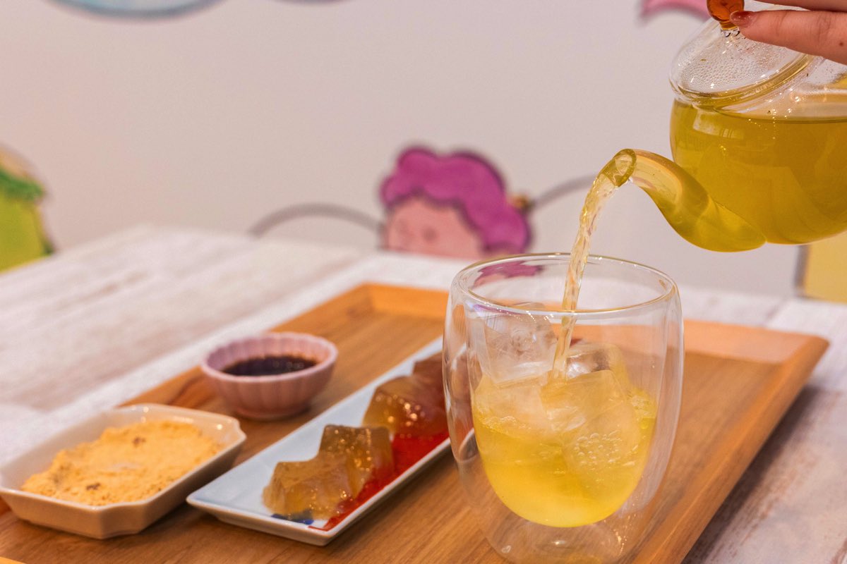 ペアリングには「狭山茶」を。茶葉の香り高くさっぱりと飲めて、わらび餅との相性抜群♪地元のお茶屋さんから取り入れているという茶葉は地元の茶葉を中心に、その時々の旬のものを取り入れていく予定とか。