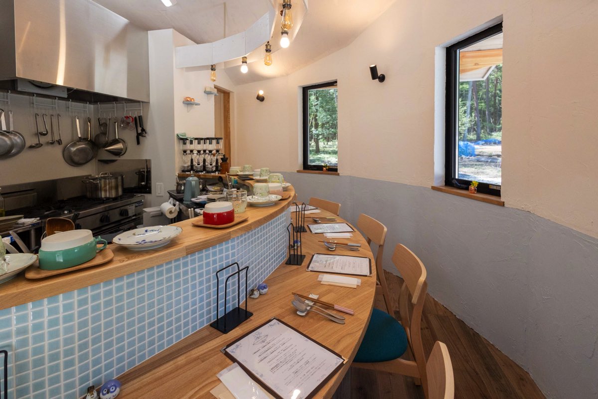 緑眩しい富士河口湖町の木立の中に佇む、カウンター6席のみの隠れ家「うつわと料理 食堂のリティーノ」。