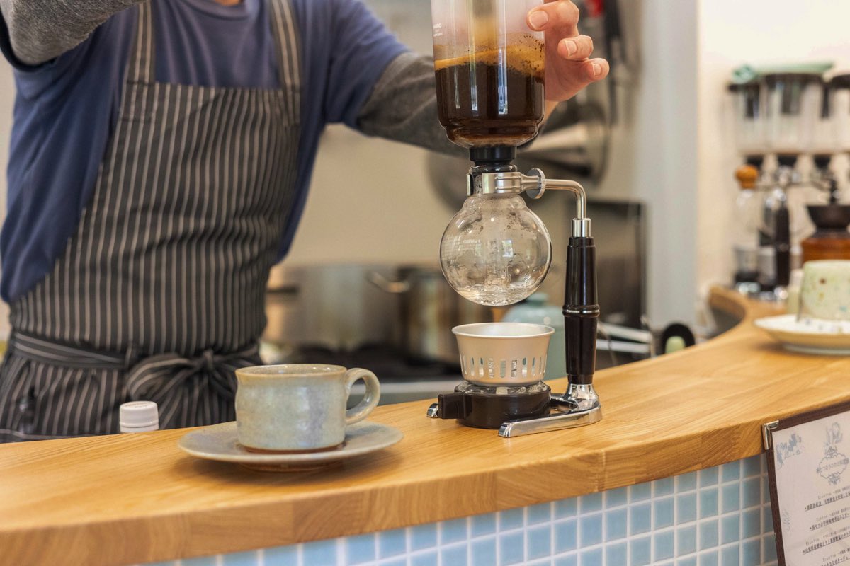 最後はパフォーマンスとしても楽しませてくれるコーヒータイム♪演出効果抜群のサイフォンで至福の一杯を目の前で淹れてくれる。