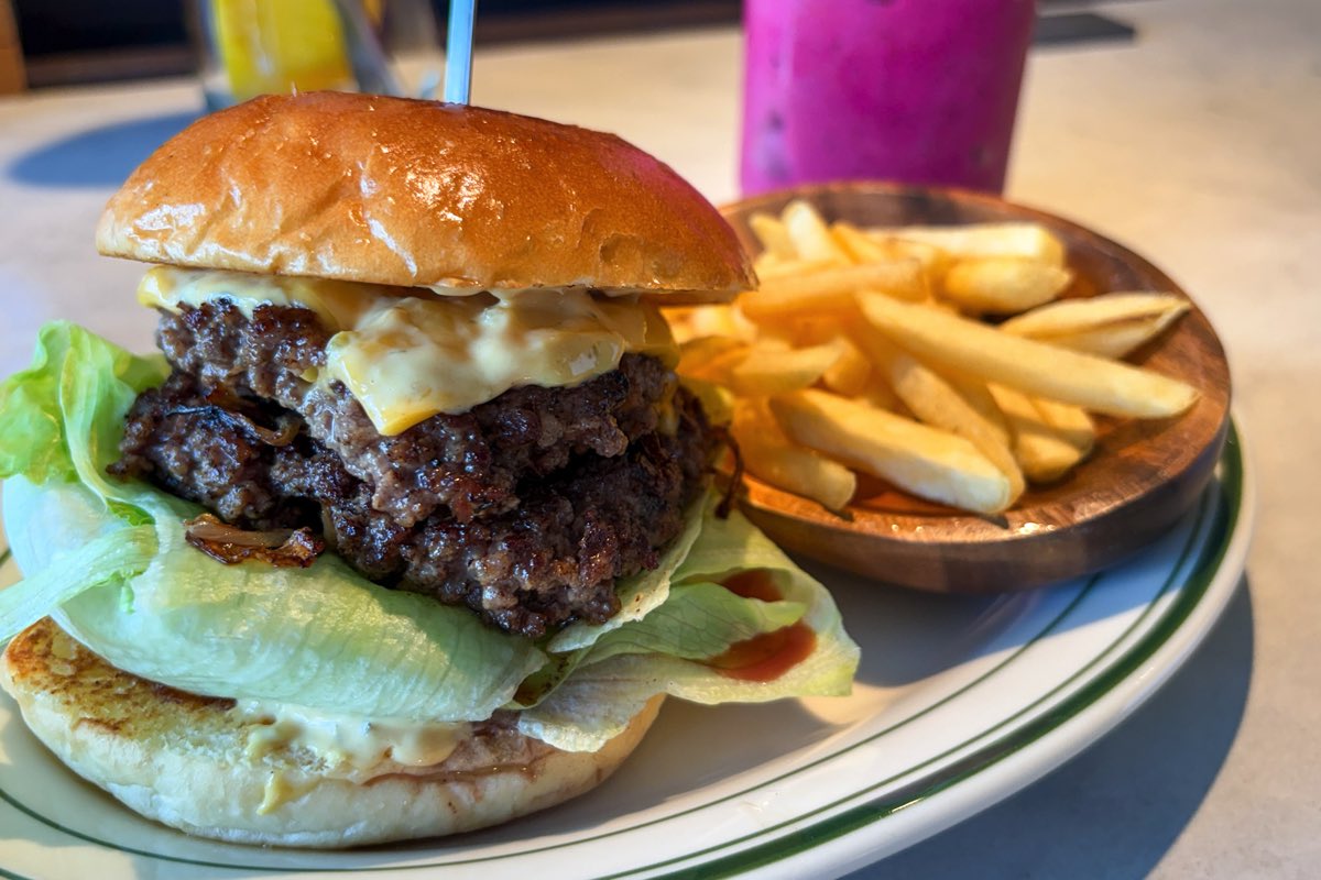 焼肉店を数店舗経営しているため、お肉の品質と味には自信あり!ということで、あえてハンバーガーではなく、牛100%をあらびきの肉を強く押しつぶして焼き上げるスマッシュバーガーを提供する。