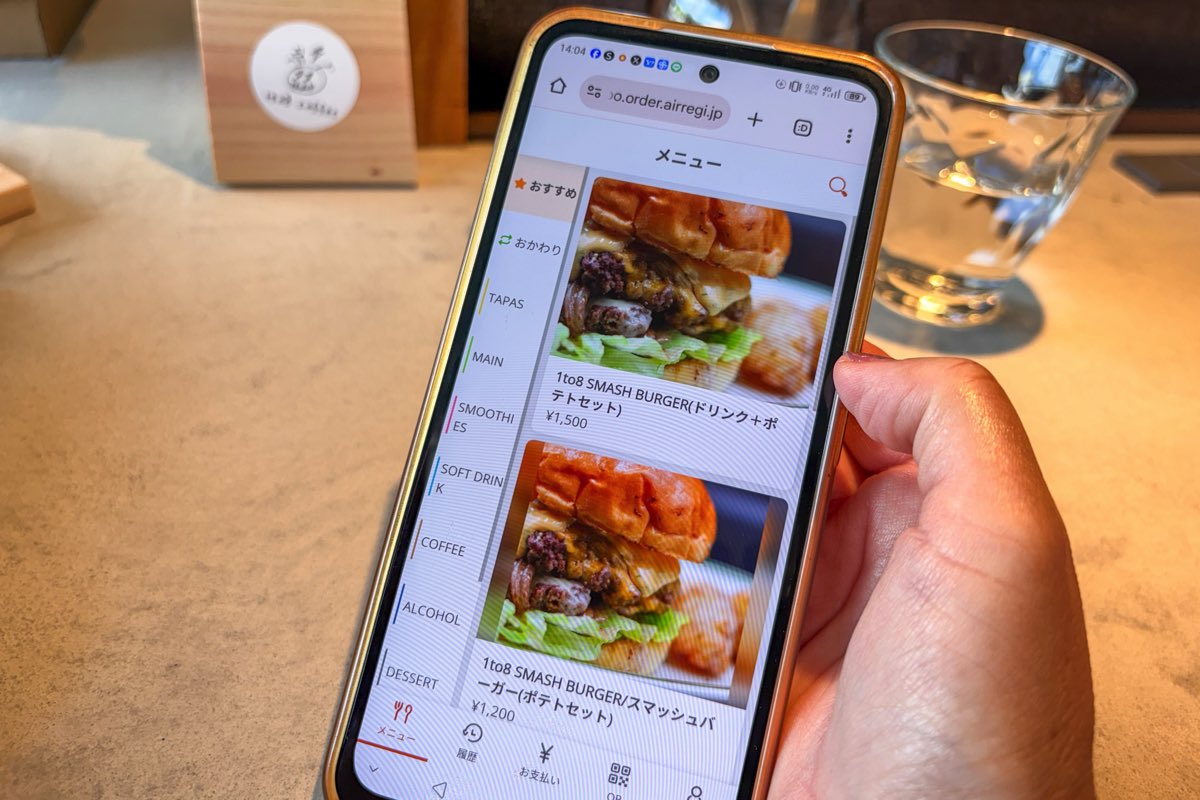 オーダーは、テイクアウトもイートインもスマホから。スムージーやふわっふわのスフレパンケーキのほか、山梨ではまだまだ珍しいスマッシュバーガーなど、フード系も見逃せない。