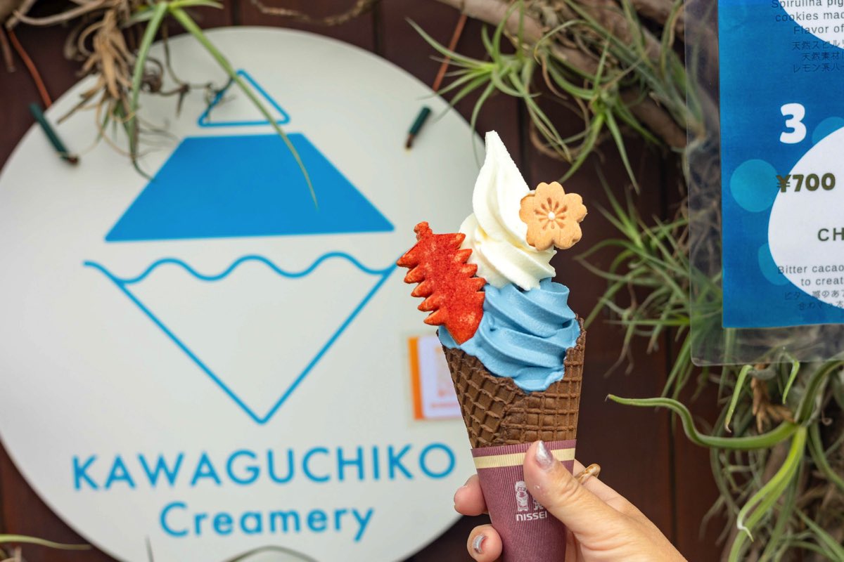 観光客で賑わう河口湖駅から徒歩20秒!2025年4月1日にオープンしたソフトクリーム専門店「KAWAGUCHIKO Creamery」は、見た目だけでなく、美味しくて天然素材にこだわった安心安全なソフトクリームが人気沸騰中!!