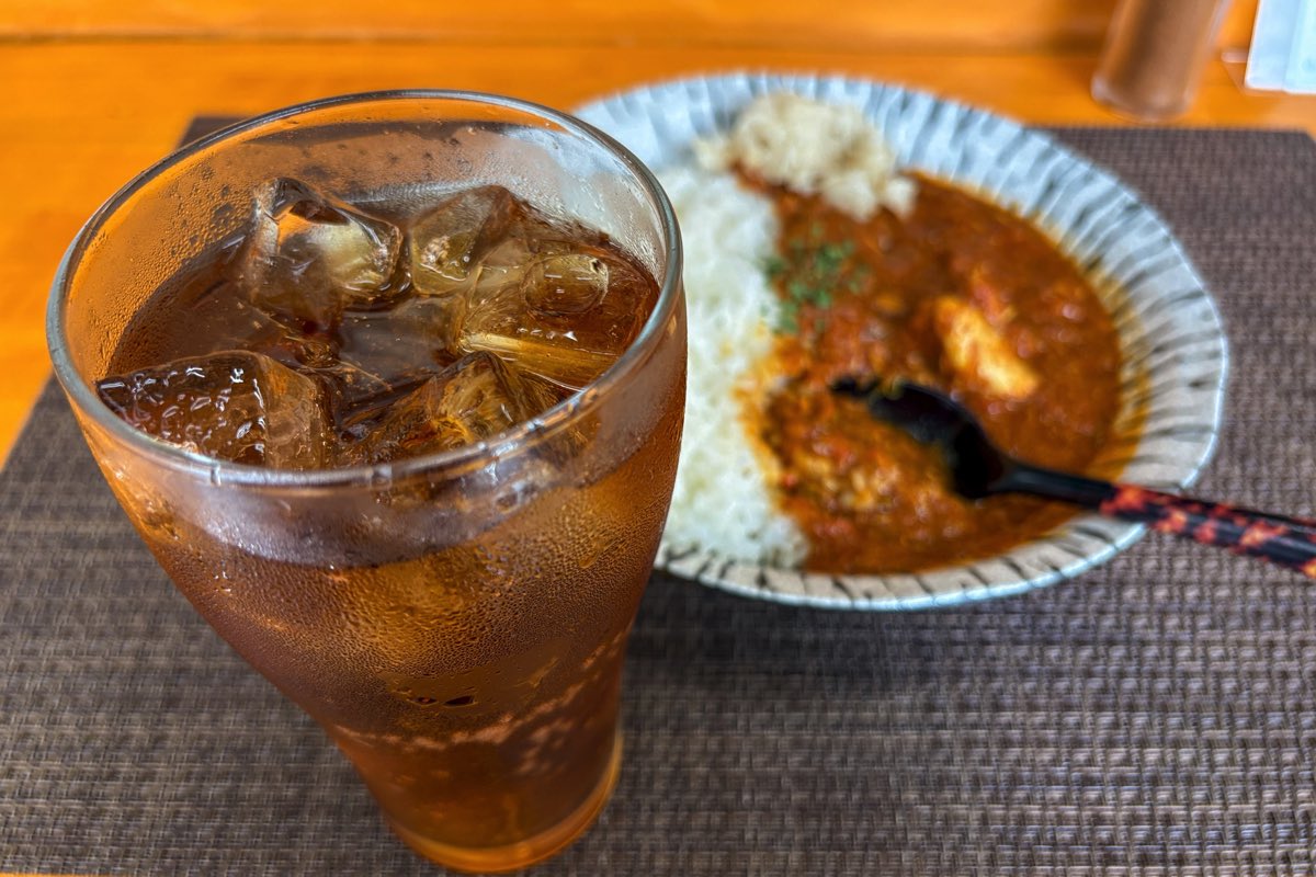 スパイスの絶妙な配合とコク出しのトマト、タマネギの甘みとチキンのジューシーな旨味の掛け算がなんて絶品なの~!ランチドリンクには辛口ジンジャーがベストマッチ!香り豊かなスパイスが食欲をそそり、喉にピリッとくるジンジャーもこれまたよき。