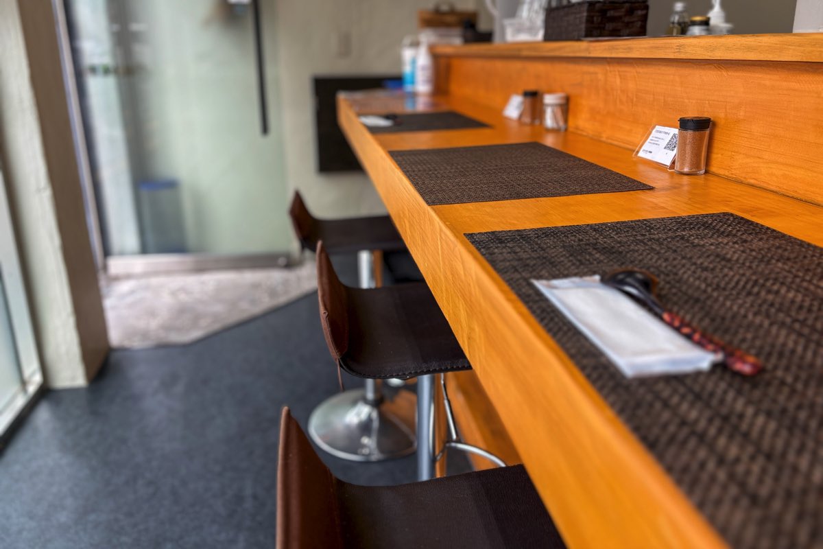 店内はカウンター席のみで右側に5席、左奥に4席の合計9席。ビジネスマンのランチにはもちろん、お買い物帰りなど気軽にふらっと寄れる雰囲気がいい。