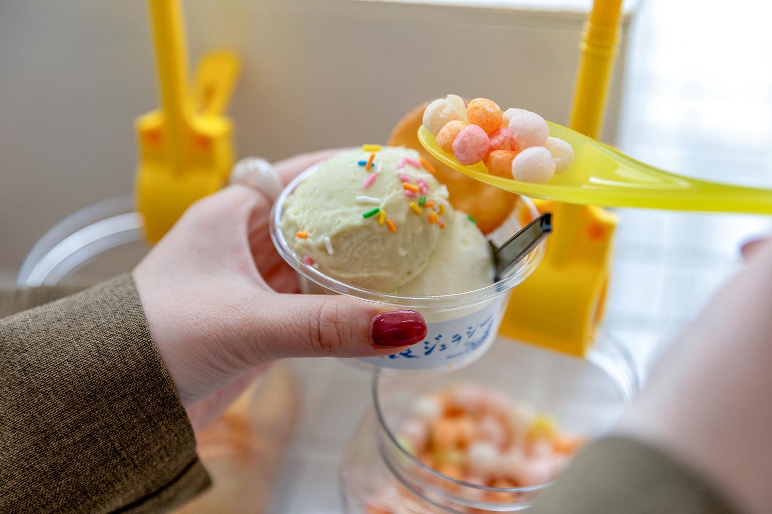 100円で提供してくれるキッズサイズは、好きなフレーバーにプラスしてクッキーを1枚添えてくれると、子どもにとっても優しい♪