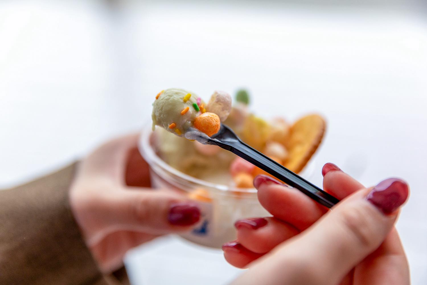 ミルク感たっぷりのジェラートに、ほろ苦いクッキーの食感がアクセントに。
